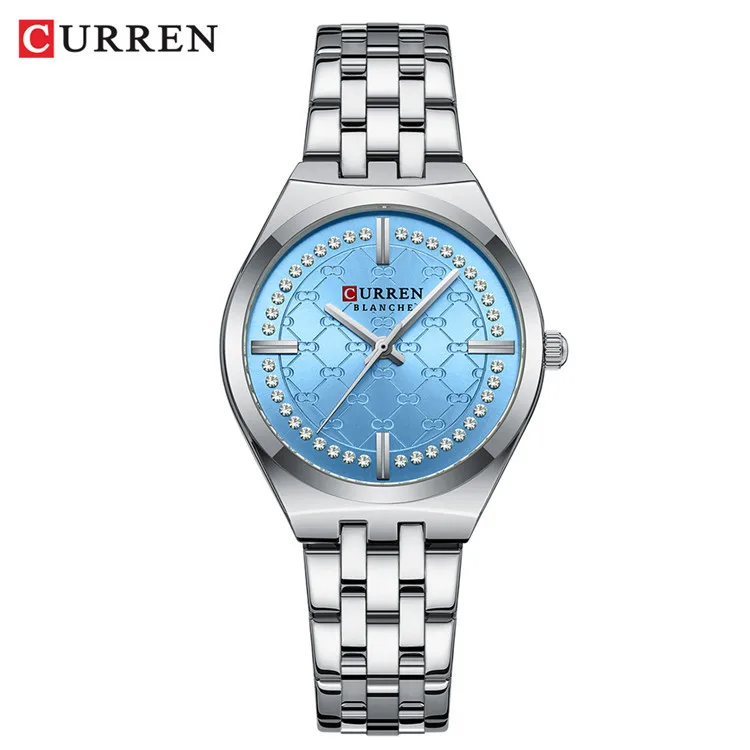 CURREN 9096 Women’s Quartz Watch Luxury Diamond Stainless Steel Strap Waterproof Fashion Simple Small Dial Ladies Casual Watches