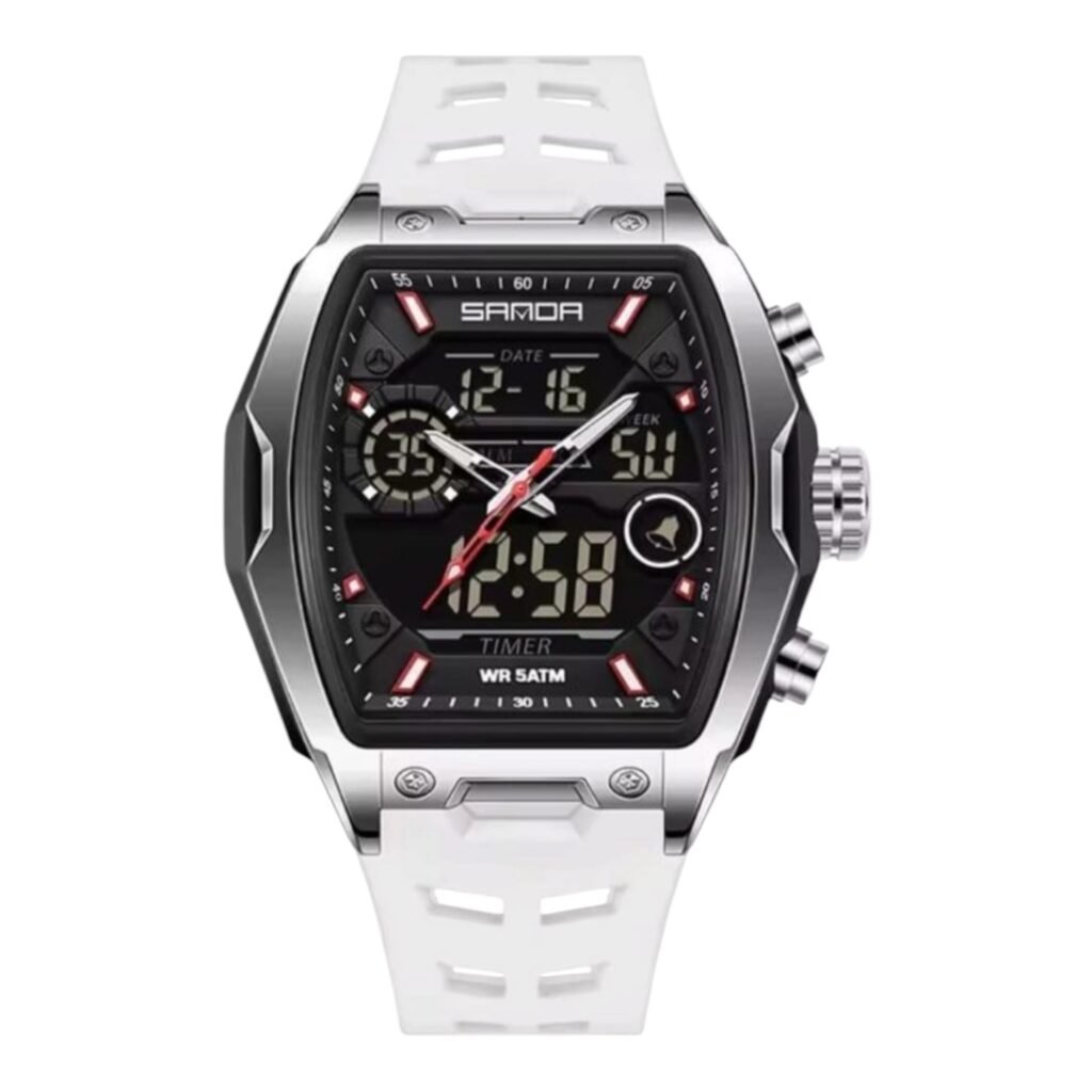 Curren 8442 Chronograph Tonneau Fashion Sports Watch Waterproof Quartz Auto Date Blue Silicone Strap Luminous Wristwatch for Men