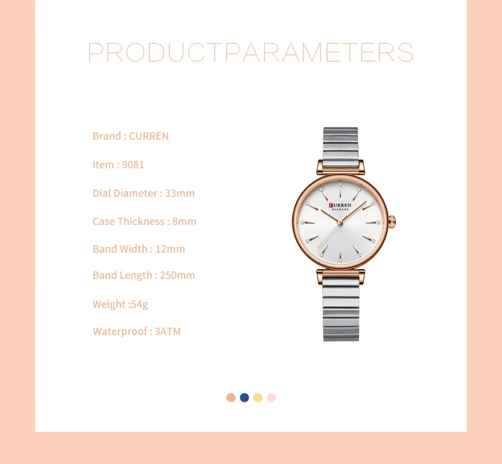 - Precise Japanese imported quartz movement for accurate time keeping.