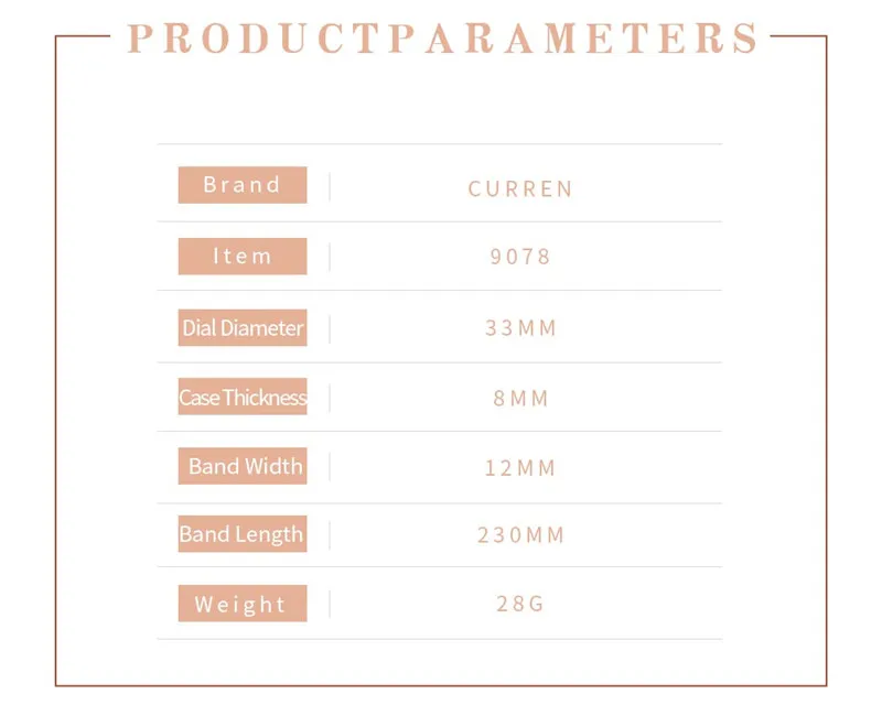 - Water Resistant: 3 ATM (for daily use, cannot put into water or shower or swimming)