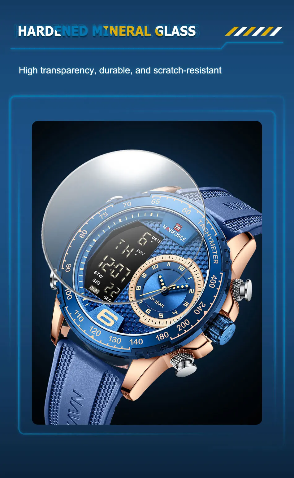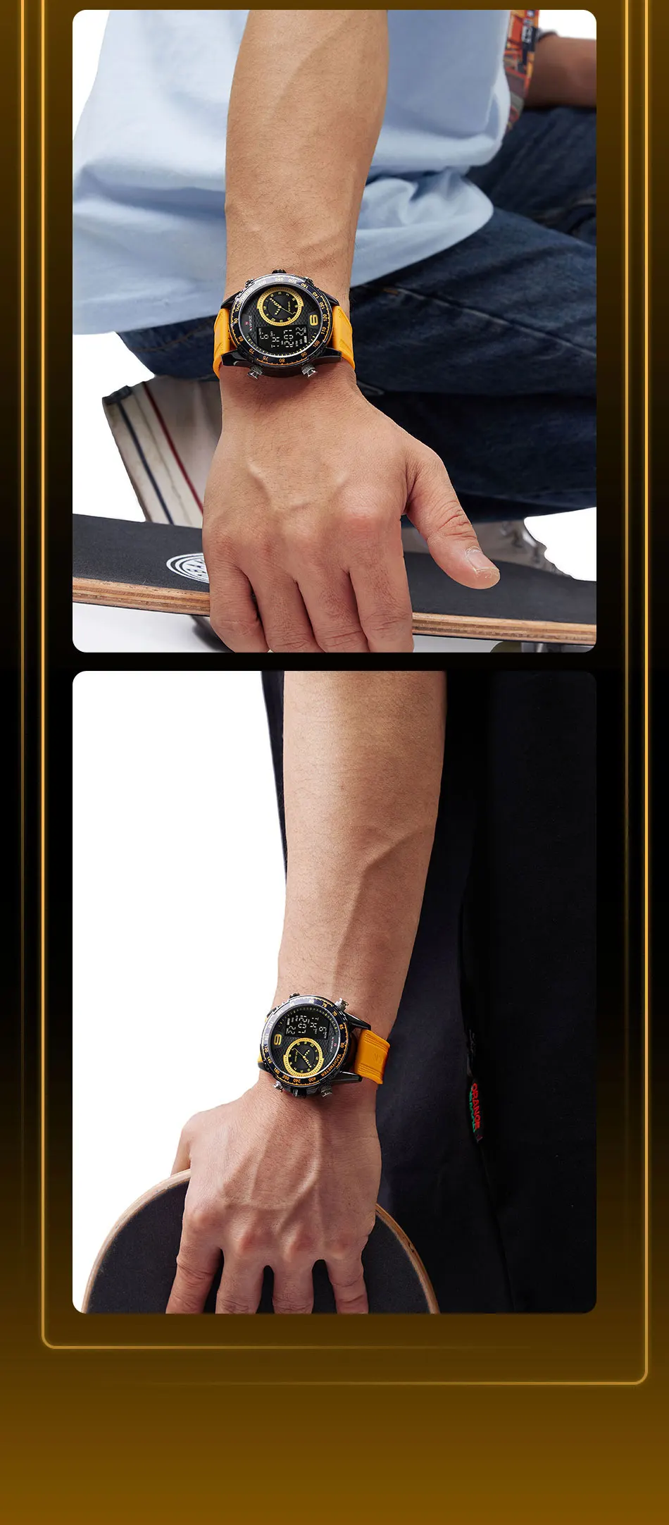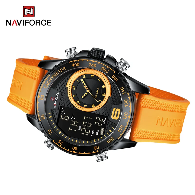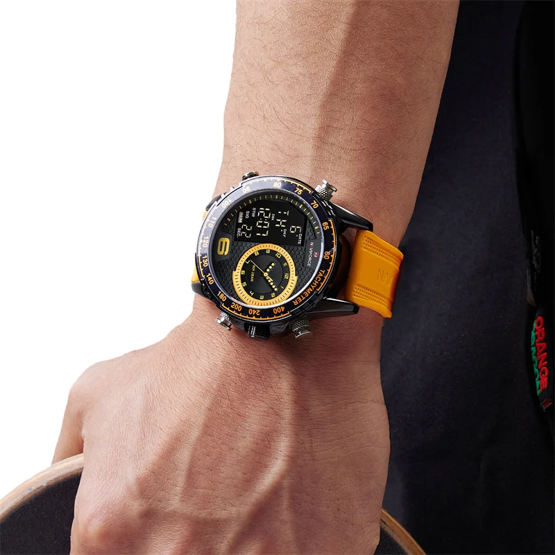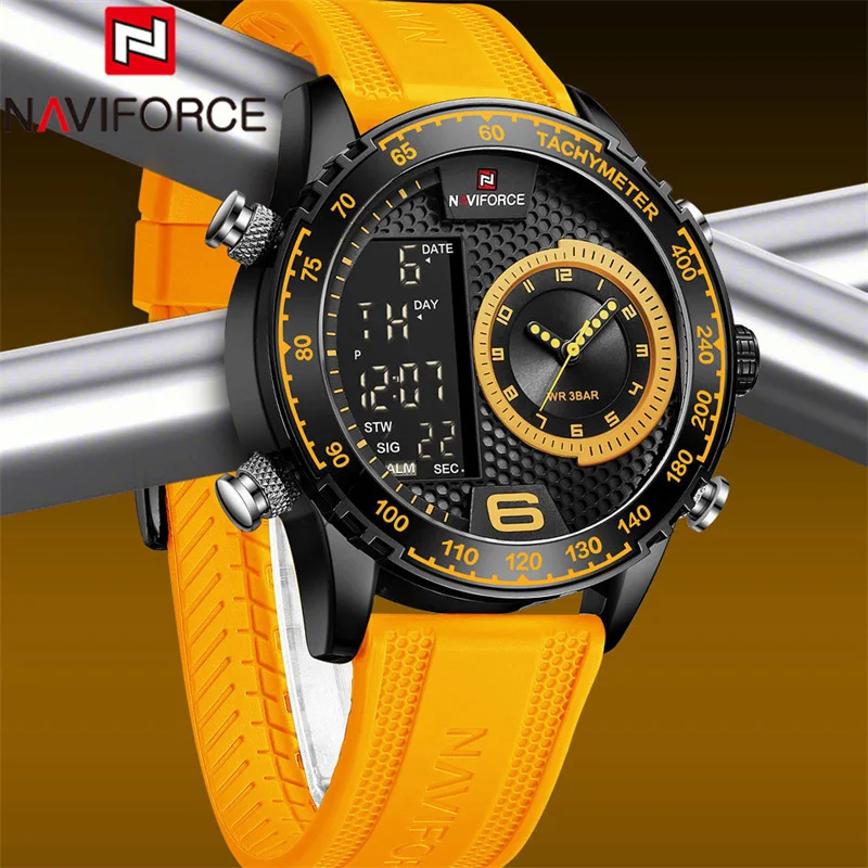 NAVIFORCE Watch Men Top Brand Luxury Yellow TPU Sport Chronograph Male Clock Digital Quartz Original Military Wristwatch 9199