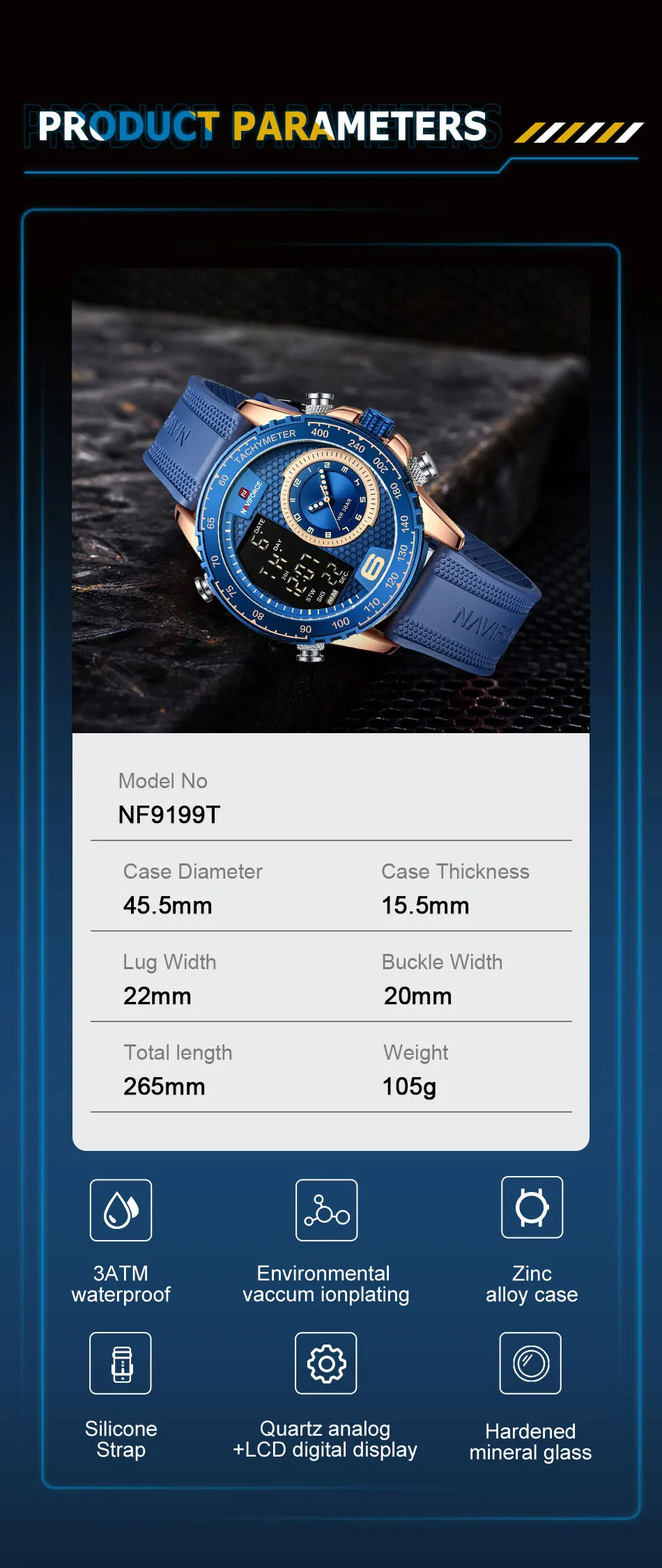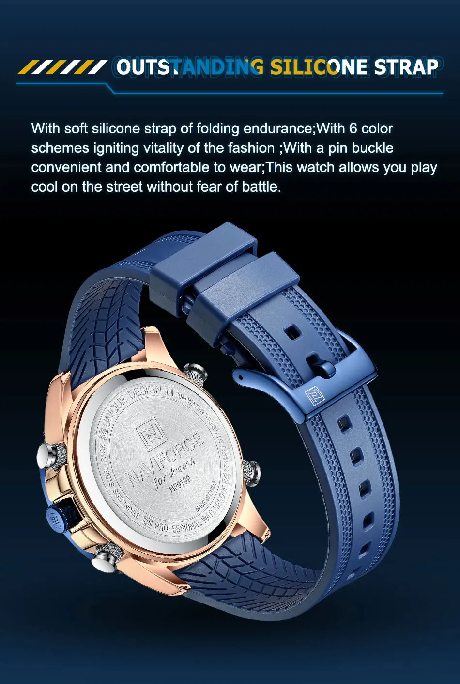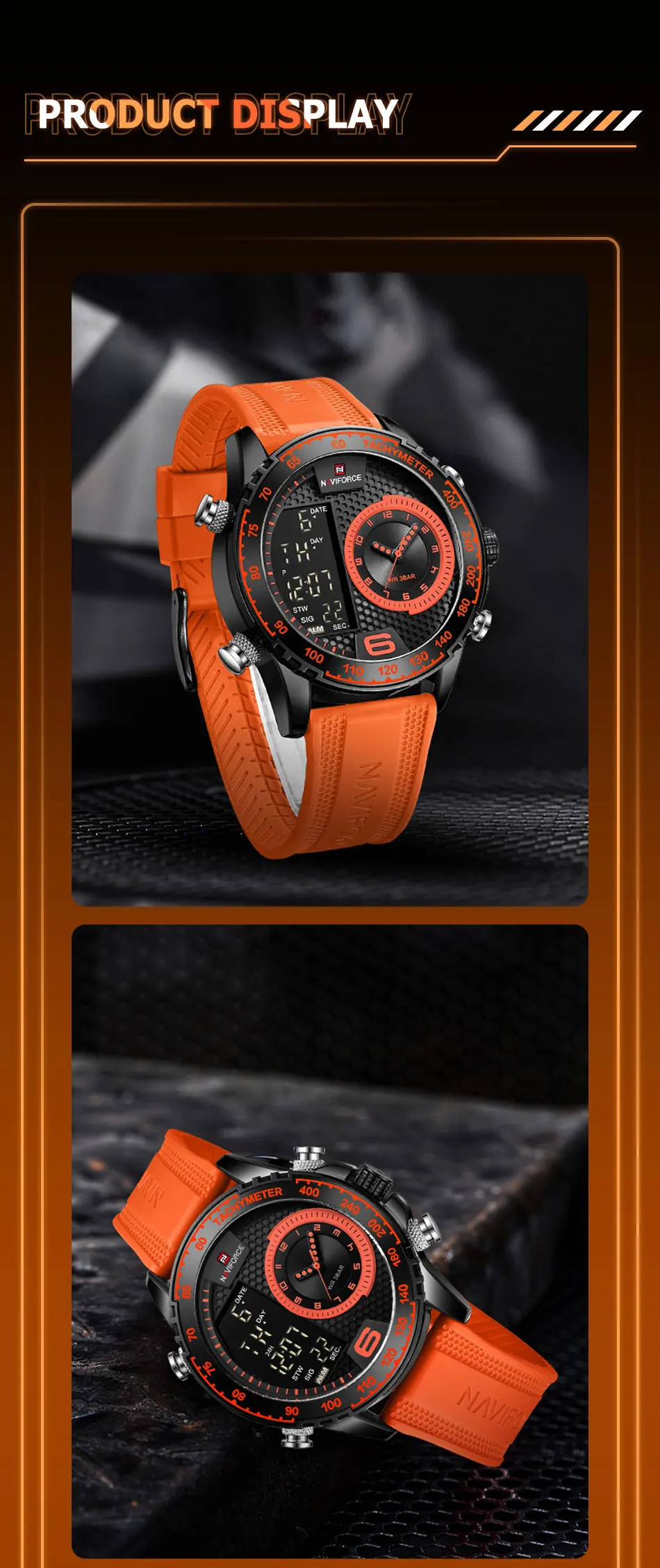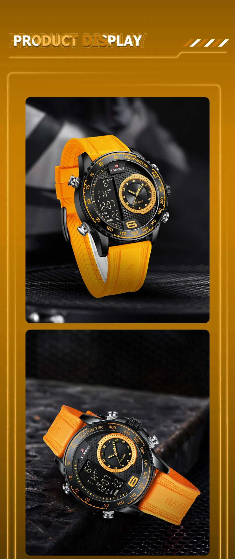 Be the first to review “NAVIFORCE Watch Men Top Brand Luxury Yellow TPU Sport Chronograph Male Clock Digital Quartz Original Military Wristwatch 9199”