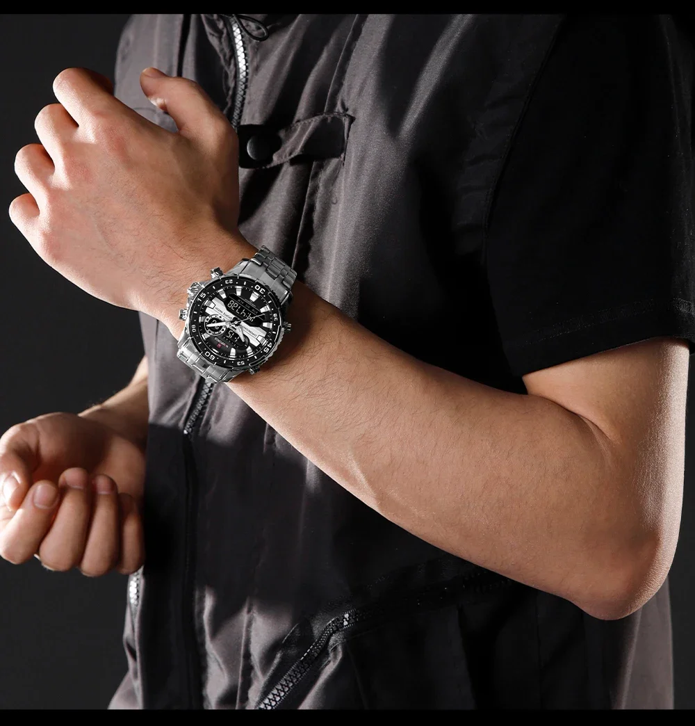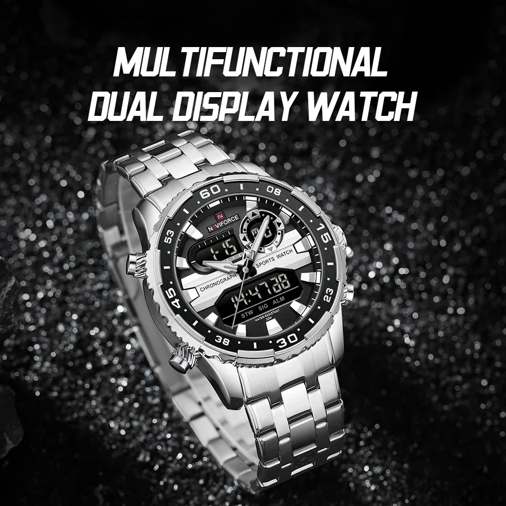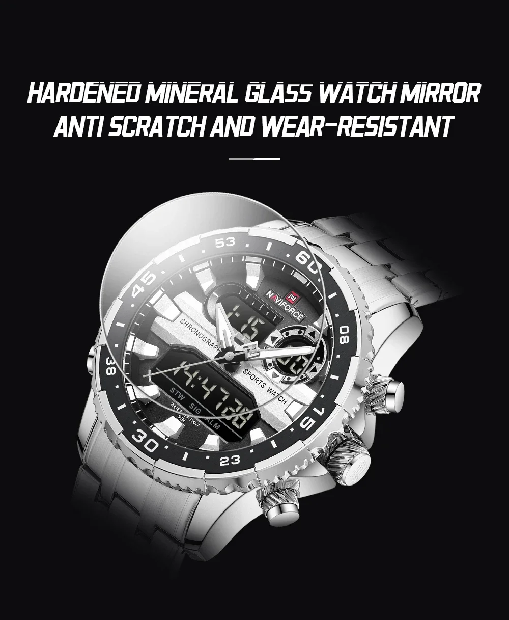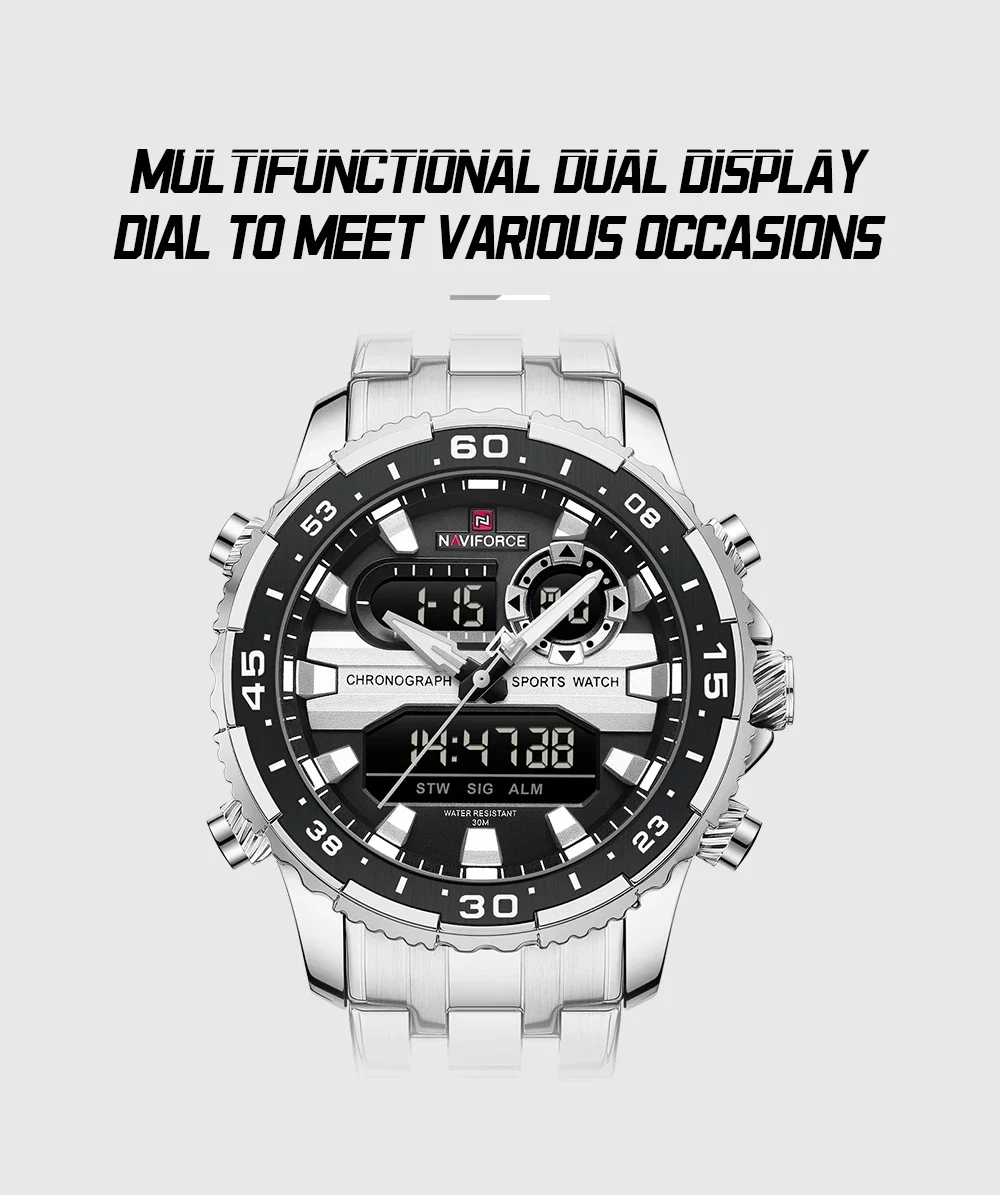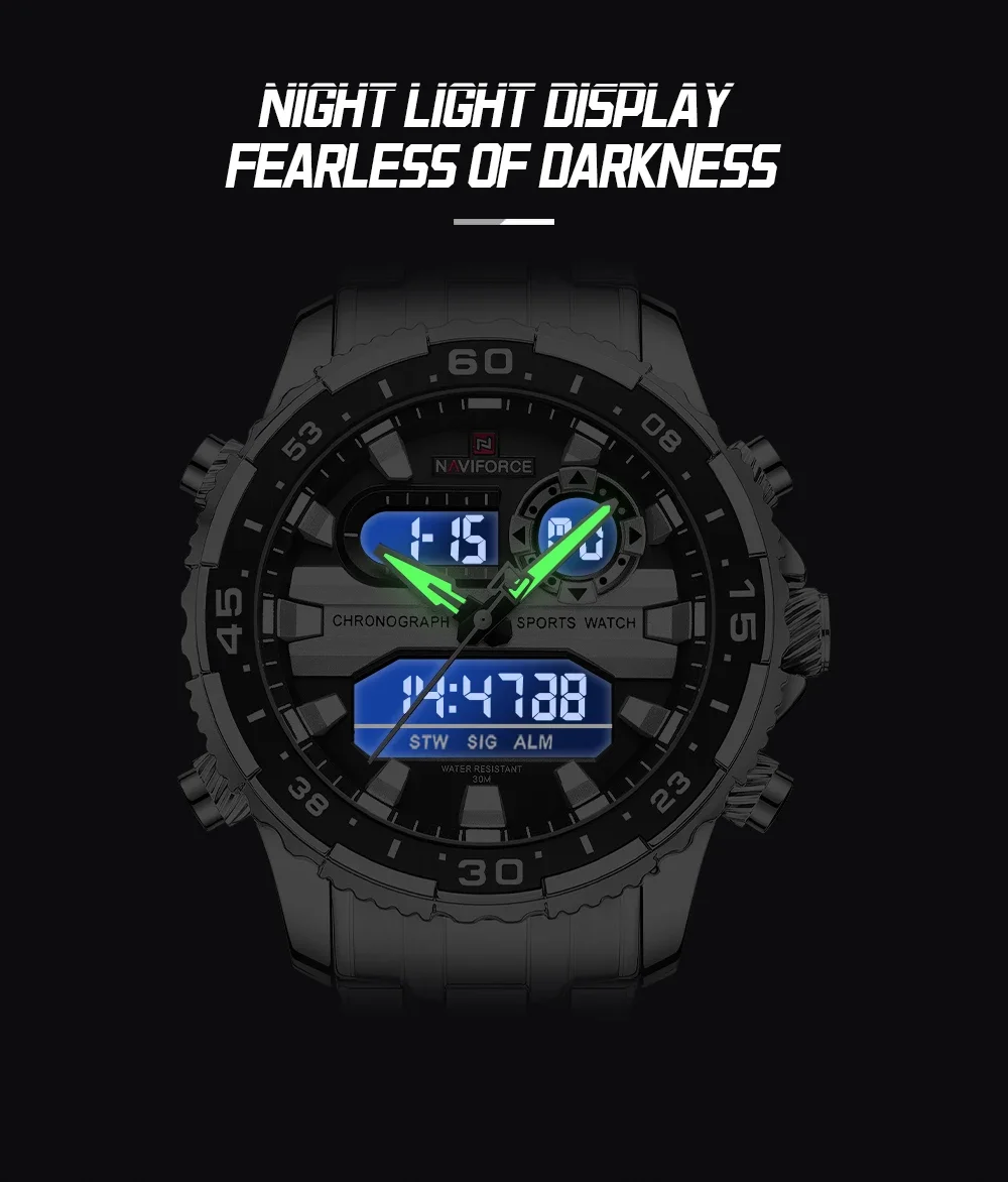 NAVIFORCE NF9234 Original Trend Brand LCD Display Analog Digital Quartz Man Clock 30m Waterproof Luminous Wristwatch
