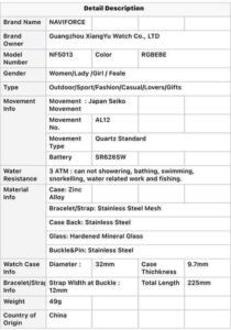 Be the first to review “Top Brand NAVIFORCE Ladies Watch Fashion Creative 3D Rose Women Wristwatches Casual Dress Clock Relogio Feminino 5013”