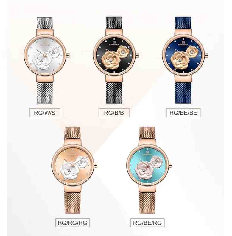 Top Brand NAVIFORCE Ladies Watch Fashion Creative 3D Rose Women Wristwatches Casual Dress Clock Relogio Feminino 5013